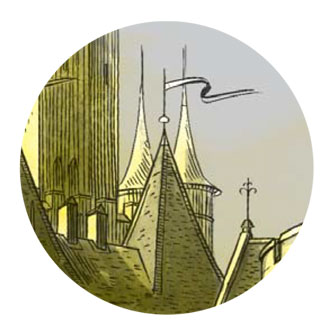 Старик смеётся в бороду и продолжает свой обход. Он поворачивает подзорную трубу то так, то этак и видит много любопытного. Вот подозрительные личности сидят вокруг оплывшей свечки и что-то яростно обсуждают. Вот многомачтовый корабль в бурном море сворачивает паруса. Особенно внимательно старик вглядывается в путаницу дорог. Всадники и пешеходы, повозки и кареты – он ищет среди них что-то очень важное, но не находит.