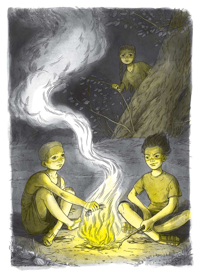 Тюха решительно отвела ветку тополя и шагнула к костру. Мальчишки замерли, уставившись на неё изумлёнными глазами. Один – зеленовато-серыми, другой – тёмно-карими. От удивления они даже забыли бросить в огонь новую порцию топлива. Тюха тоже молча смотрела на ре бят, не зная, к кому из них лучше обратиться. Мальчишки пришли в себя первыми. Светловолосый паренёк вскочил, а смуглый словно бы с досадой разломал сухую ветку и швырнул в огонь.