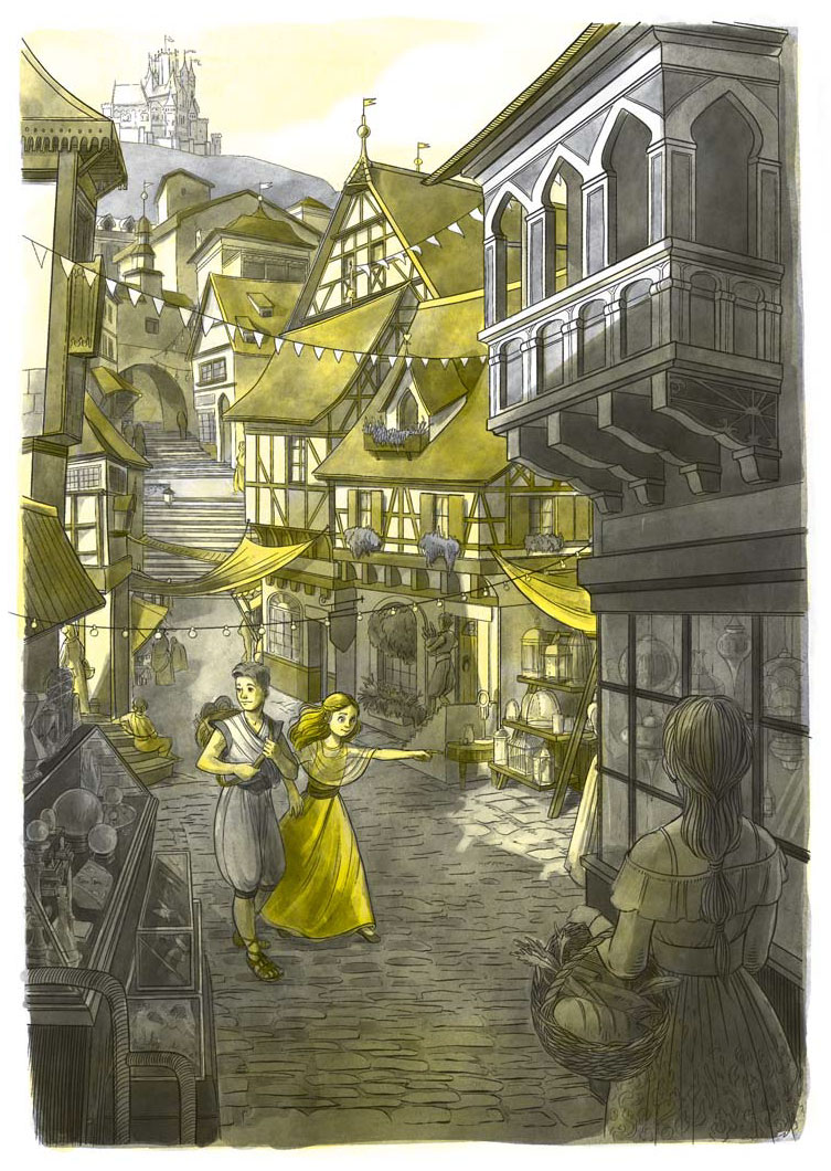 Нико с Марикой обещали донне Марте не заходить в глубь рыночного лабиринта. Всё, что им нужно, продавалось в съестном ряду на краю бесконечной торговой площади. А дальше шли ходы и закоулки, где можно было раздобыть змею или верблюда, духи и краски, ус кита или рога оленя – да всё что угодно! И хотя герцог запретил торговать людьми и опасными зельями, но торговцы хитры, а рынок велик. Даже запахи, вьющиеся над ним, одновременно дразнят и тревожат.