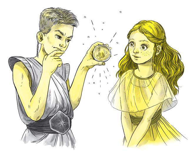 Старик поворачивает свою трубу и видит простую кухню. Над очагом подвешен котелок, в котором закипает вода. Склонившись над столом, высокая женщина и девочка-подросток дружно режут овощи: капусту, лук, морковку. Можно не сомневаться: это мама с дочкой. У обеих густые тёмно-рыжие волосы, тёплые карие глаза и большие улыбчивые рты. Но сейчас обе они серьёзны и чем-то озабочены. По каменным ступенькам в кухню сбегает светловолосый паренёк – уже не мальчик, но ещё не юноша. Он что-то горячо, сердито говорит, с досадой бьёт кулаком в каменную стену. Женщина бросает резать овощи, обнимает парнишку за плечи, что-то ласково ему втолковывает.
