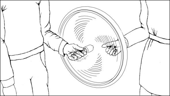 – Ты держи тот конец оси. Положи ось на указательный палец и прижми большим. Этот конец оси держу я. Теперь поднимаем или опускаем, каждый свой конец оси.