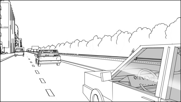 Полицейские автомобили, стоявшие у того конца площадки, где рисовал Фред, красиво, почти синхронно разворачиваются. Развернувшись, они уезжают за своими коллегами.