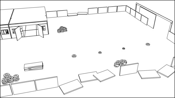 В гараже, у левой стены, если смотреть от ворот, рядом с входом стоят друг на друге много бочек из-под моторного масла и других ГСМ.