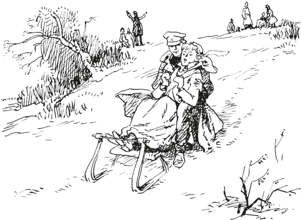 Санки начинают бежать все тише и тише, рев ветра и жужжанье полозьев не так уже страшны, дыхание перестает замирать, и мы наконец внизу. Наденька ни жива ни мертва. Она бледна, едва дышит… Я помогаю ей подняться.