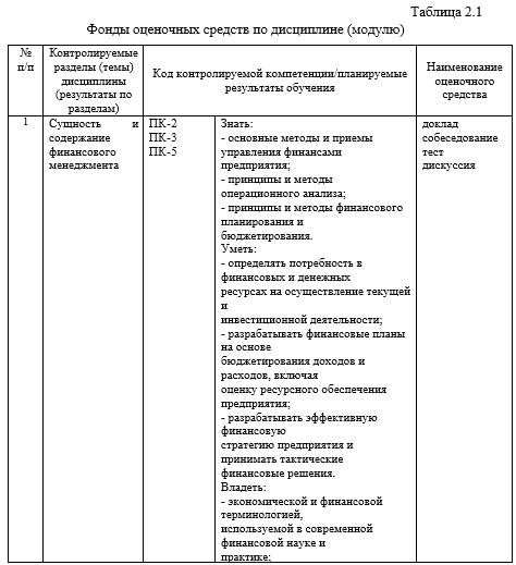 Фонд оценочных средств дисциплины «Финансовый менеджмент на предприятии»