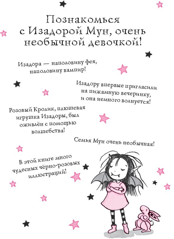 * * *– Изадора собирается в гости к Зоуи с ночёвкой, – сообщила мама вечером во время завтрака. Да-да, я ничего не перепутала. Просто в нашем доме два завтрака: утром и вечером. Мой папа спит целый день и просыпается ближе к ночи.