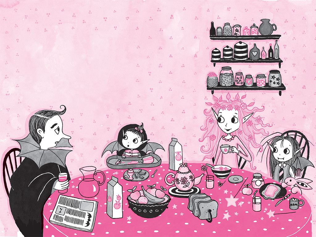 Вас, наверное, это немного удивляет? Дело в том, что моя мама – фея, она любит проводить время на природе и не понимает, почему людям так нравится сидеть перед ящиками, на экране которых движутся картинки. Но даже если бы у нас и был телевизор, я бы всё равно смогла смотреть его только тогда, когда моего папы не было бы дома. Для него любое кулинарное шоу стало бы фильмом ужасов. А всё потому, что мой папа – вампир. Он признаёт только еду красного цвета, например томаты или клубнику.