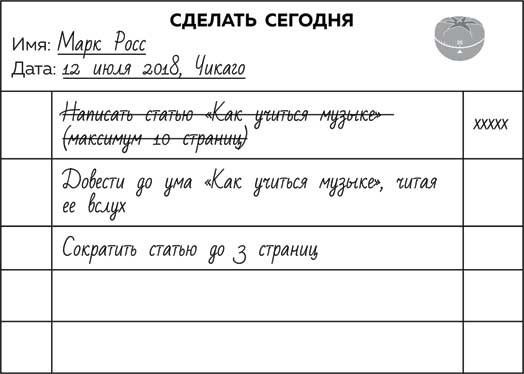 Продолжайте работать, Помидорка за Помидоркой, пока не закончите текущую задачу, после чего поставьте крестик в списке «Сделать сегодня».