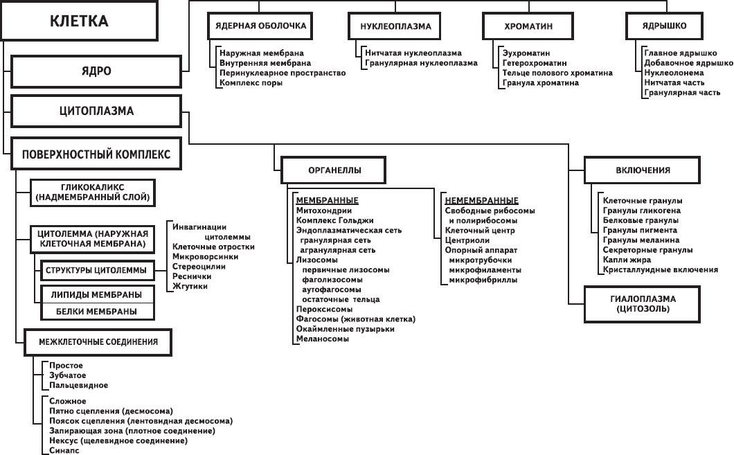 Основными функциональными структурами клетки являются ее поверхностный комплекс, цитоплазма и ядро (рис. 1, табл. 2).