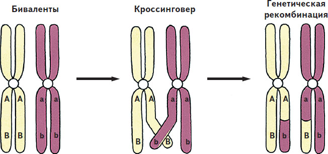 Рис. 4. Схема обмена генами двух хромосом (кроссинговер)