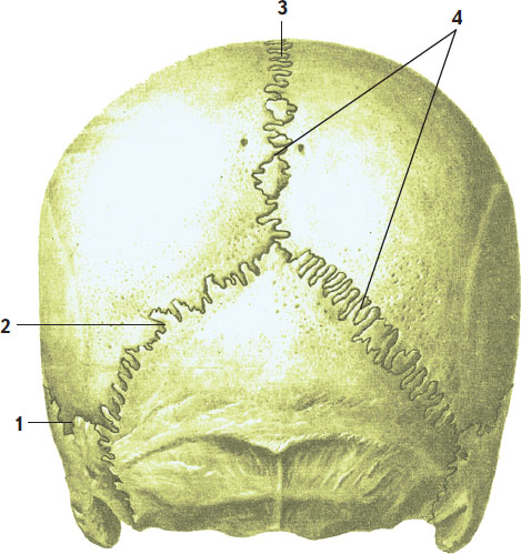 Рис. 36. Швы черепа (вид сзади):