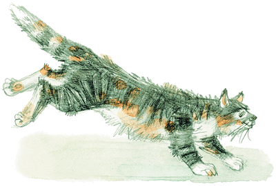Она прыгнула со шкафа на комод, с комода на стул, со стула на пол.