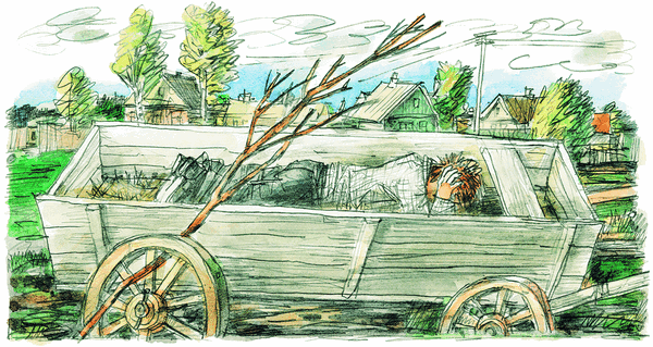Вот лошадь скачет. А Вася лежит в телеге и орёт со всей силы. А ветка его лупит – то по спине, то по ногам, то по затылку.