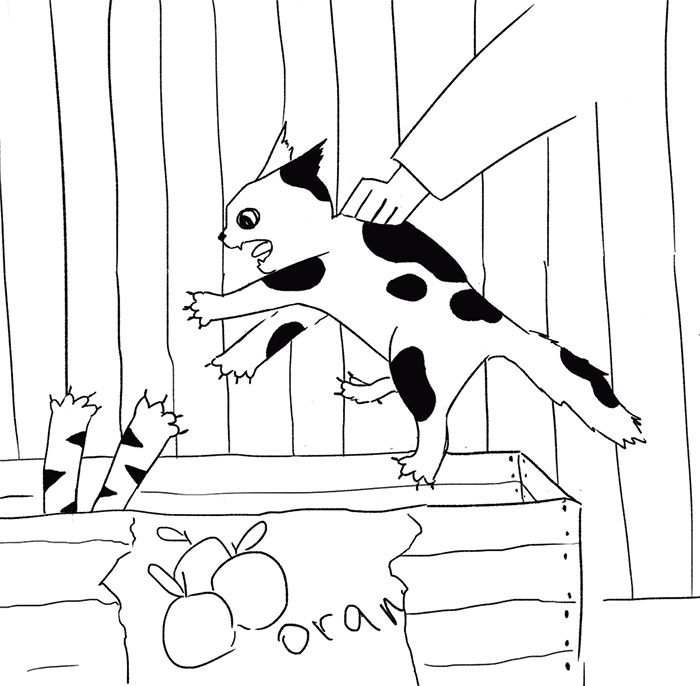 Двух котят уже забрали, она понимала, что со дня на день и эти два котенка навсегда покинут ящик из-под апельсинов с расстеленной на дне старой кофтой. И когда она увидела, что хозяйка встречает у калитки мужчину, женщину и девочку лет 5, интуиция подсказала ей, что сегодня в ящике будет спать только один котенок. Только вот кто: дочка или сыночек? За этого мальчика ей всегда было тревожно: уж очень он выглядел обычно, ничем не привлекал – серенький с невыразительными полосками и пятнышками. То ли дело его черно-бело-рыжая сестра, обещавшая стать красавицей, достойной обложки журнала Vogue.