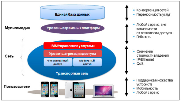 Рисунок 1.13. Единая инфраструктура для всех типов услуг и устройств