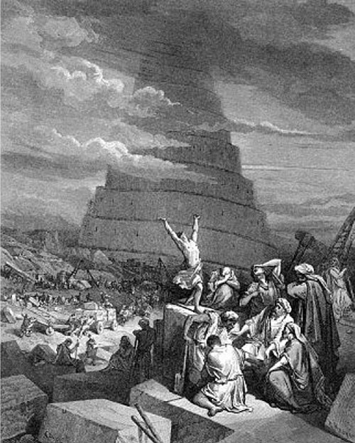 Но, прежде чем разойтись, потомки Хама, увлекая за собою и других, задумали построить город и в нем башню, наподобие столпа, высотою до небес, чтобы прославиться и не быть в подчинении у потомков Сима и Иафета, как о том предсказал Ной. Они наделали кирпичей и принялись за работу.