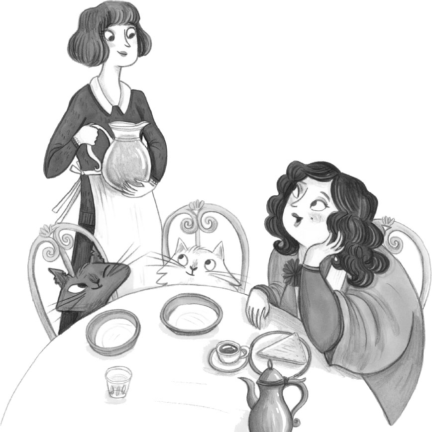 Тут, однако, их обоих восхитил голос Майнет, и она понравилась им ещё больше, когда подхватила с подноса у проходившего мимо официанта кувшин со сливками и щедро наполнила блюдечки перед котами.