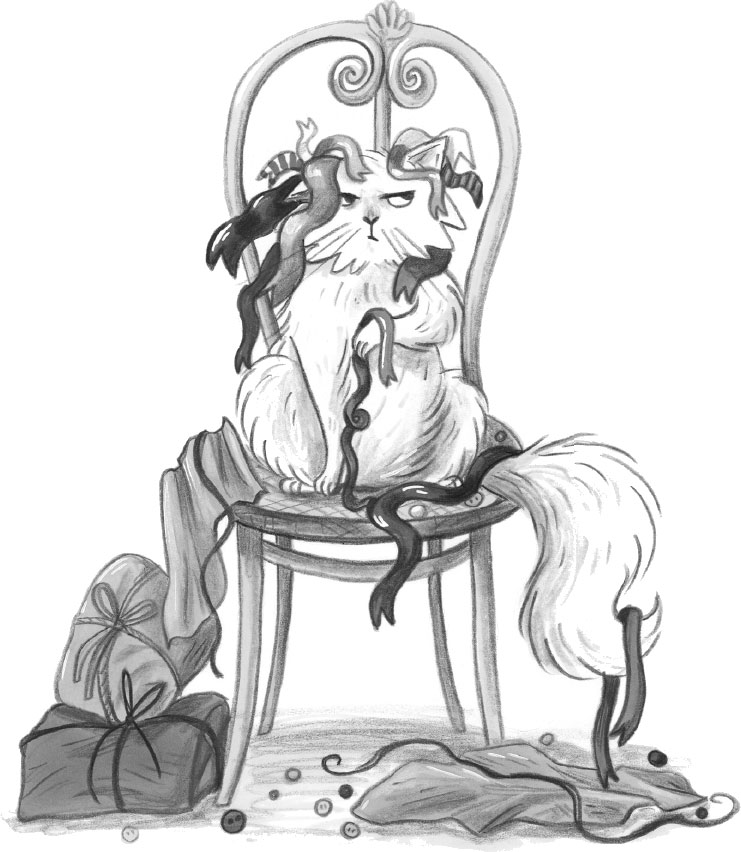 – А, вы оставили мне местечко. Как мило, – выпалила она, не заметив Максимилиана, и не успела Сильвия предупредить её, как миссис обрушила всю гору покупок на кота. Макс возмущённо завопил из-под града пуговиц, ленточек, пакетиков с бисером и совсем скрылся под ворохом коричневой бумаги и бечёвок.