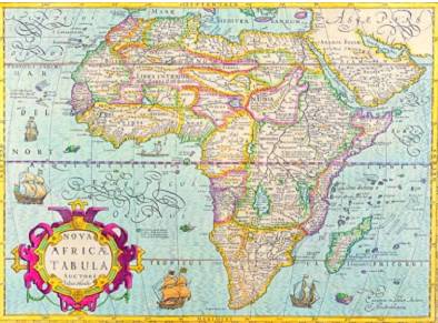 – В 1587 году, в Милане был создан самый подробный Атлас Мира, среди карт того времени. На нём зарисованы и описаны земли, известные европейцам XVI века. Он подтверждает, что материки имели другую форму, и не только материки! Другим был и температурный режим Мира! Обратите опять внимание на зелень Африки, даже не привычно глазу. Словно другой климат господствовал в те времена.