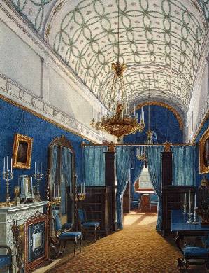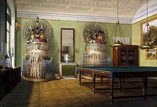 – В больших залах: танцевальном и тронном… система отопления не предусмотрена вообще, нет ни печей, ни каминов. Гостей, зимой, Государь не принимал, ибо холод был собачий, а печечку не построили при строительстве. Видимо так всё и было. Факты, по крайней мере, именно об этом и говорят.