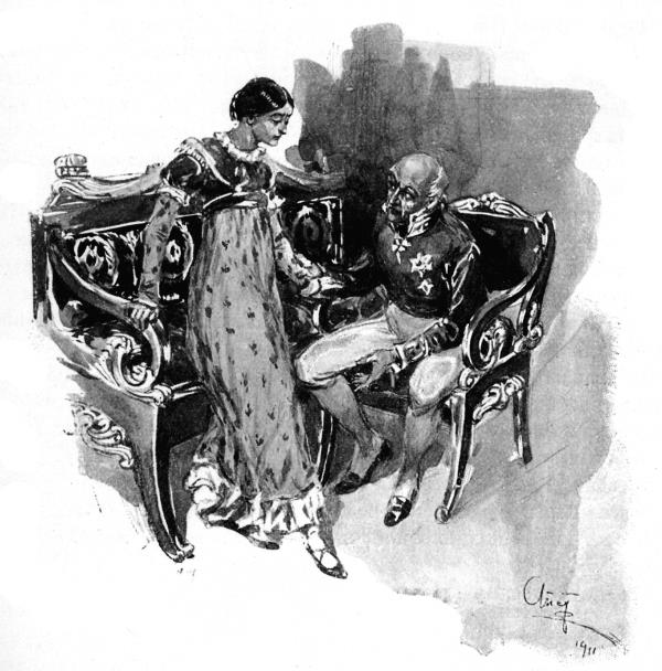 Пьер сидел в гостиной, где Шиншин, как с приезжим из-за границы, завел с ним скучный для Пьера политический разговор, к которому присоединились и другие. Когда заиграла музыка, Наташа вошла в гостиную и, подойдя прямо к Пьеру, смеясь и краснея, сказала: