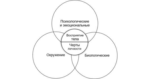 Давайте разберемся, как возникает булимия. Основные причины развития расстройства схематично представлены на . Совокупность биологических, психологических и внешних факторов (окружение) в дополнение к личностным особенностям и искаженному восприятию собственного тела приводят к началу булимии. Факторы «восприятие тела» и «черты личности» я отношу в отдельный блок. Они сформировались под влиянием окружения, биологических, психологических факторов, но играют ключевую роль и тем самым заслужили особое место. рис. 2