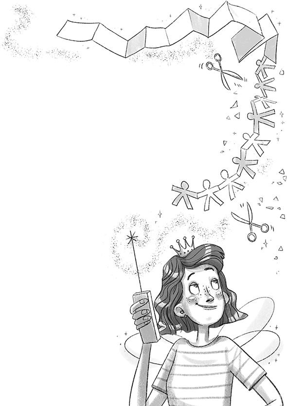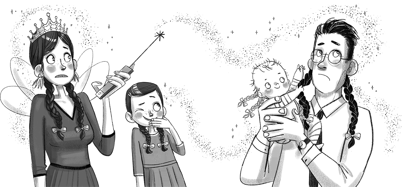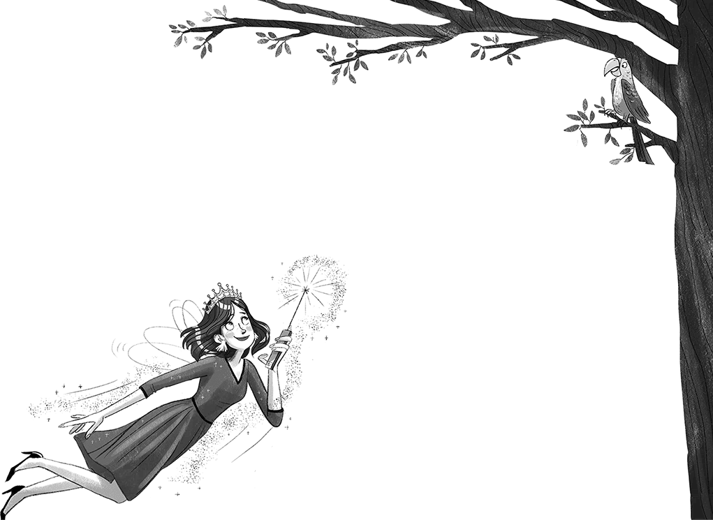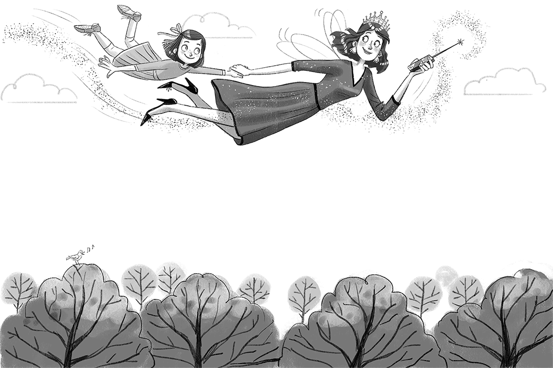 – Ой-ой, – сказала она. – Кажется, без помощи волшебства мне не обойтись. – Она трижды топнула ногами, хлопнула в ладоши, покрутила попой, произнесла «маршмеллоу»… и – ПУФ! – сделалась феей.