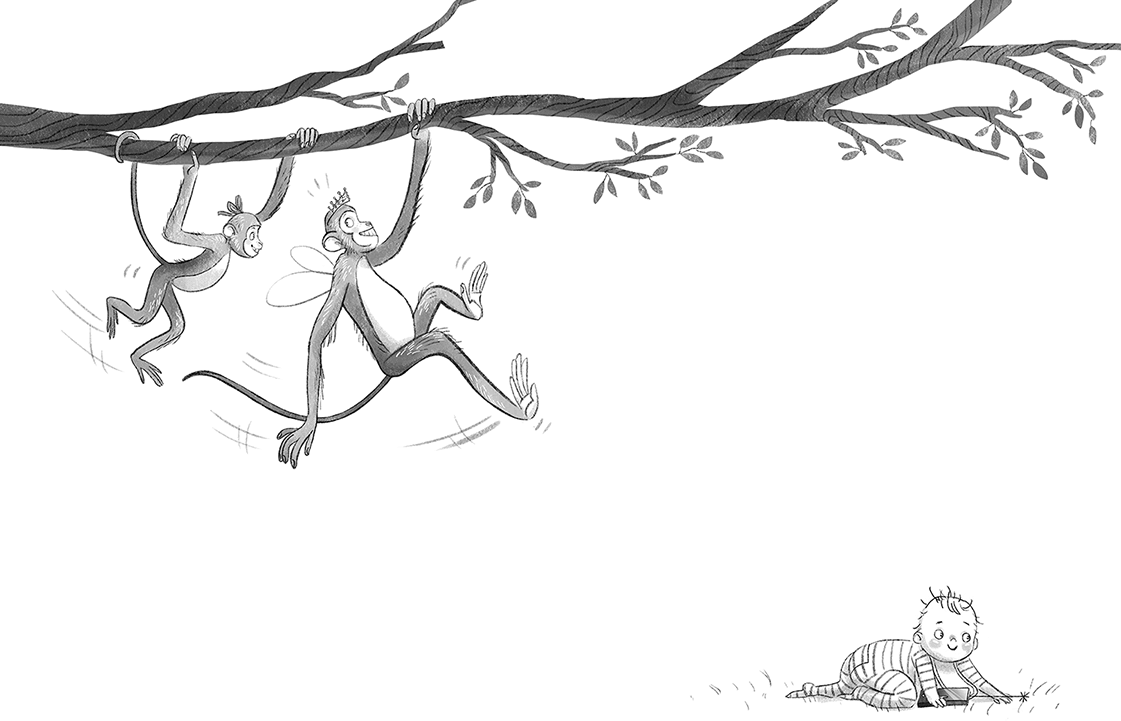 Потом я поглядела на мамочку-фею и вскрикнула, потому что она превратилась в мартышку. Что же это значит – что я теперь тоже выгляжу как мартышка? Олли таращился на нас снизу большими голубыми глазами.