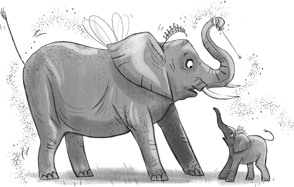 Я глянула вниз и ахнула. Да уж, я перестала быть мартышкой – я стала слоном! И мамочка-фея тоже.