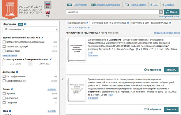 Рисунок 5 – Поисковый интерфейс РГБ (search.rsl.ru)