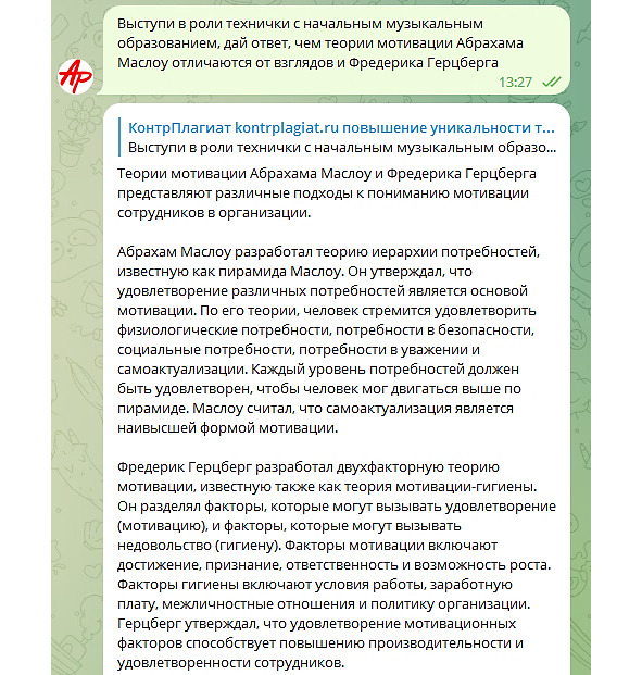 Определите роль ChatGPT, «Я хочу, чтобы вы выступили в роли высококвалифицированного SEO-специалиста». КонтрПлагиат неоднократно показывал на примерах, что роль не играет значение, ответ не зависит от того, кем себя должна представить GPT, профильным специалистом или технической с начальным музыкальным образованием, рис. 6.