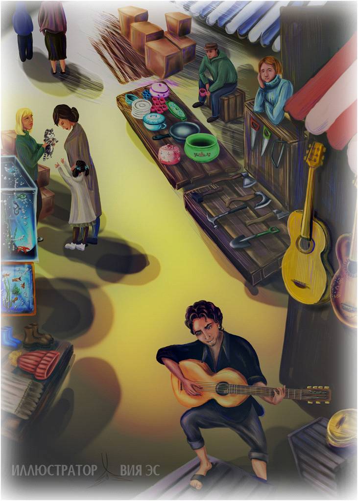 «Ило!» – позвал музыканта другой цыган. Парень, перестав играть, подошёл к позвавшему, тот показывал покупателям другую гитару – шестиструнную. Ило взял шестиструнку и мастерски сыграл на ней «Цыганочку» с вариациями. Мира не удержалась и захлопала в ладоши. А Ило, отдавая гитару в руки покупателям, взглянул на Миру. И взгляд его заставил сердце Миры забиться так сильно, что ей, идя с мамой к дому, с трудом удавалось скрывать своё волнение. Мама по дороге говорила, что пора заниматься, а то потратили столько времени зря, болтаясь по барахолке, скоро выпускные экзамены, а ещё через две недели конкурс юных пианистов в соседнем городе, и Мира должна занять на нём первое место…