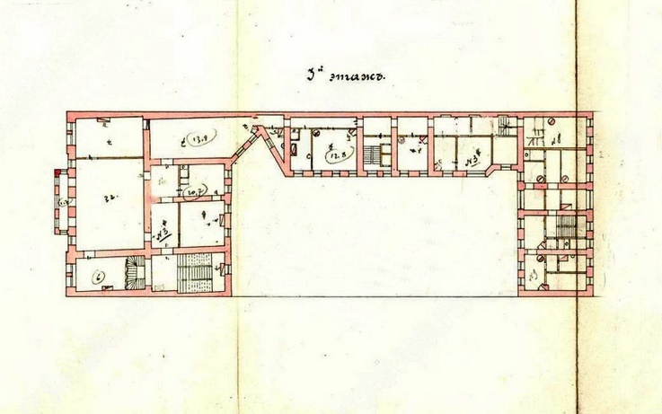 Схема 3-го этажа дома 20 по Моховой улице. 1901 год. Квартира № 9 на схеме справа (торцевая). Копия из личного архива автора. Публикуется впервые. (Источник: ЦГИА СПб. Фонд 513. Опись 102. Дело 4264)
