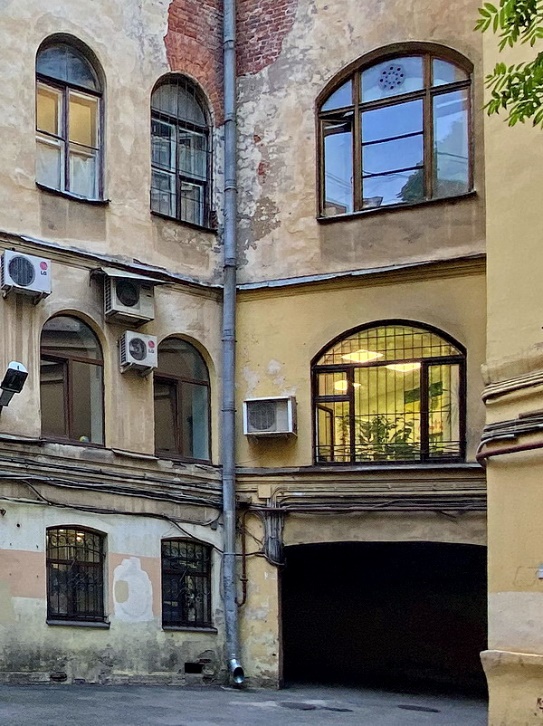 Современный вид дома со двора. Справа над аркой окно, которое когда-то в детстве разбил своим мячом Вацлав Нижинский. А под аркой – место, где Вацлав любил играть со своим маленьким литым мячом, которым бил по стенам и потолку подворотни. Фото автора