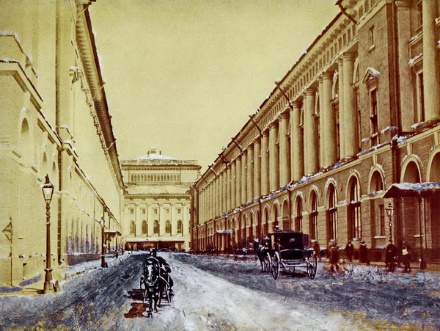 Театральная улица в Санкт-Петербурге. Справа – Императорское Театральное Училище. Конец XIX века