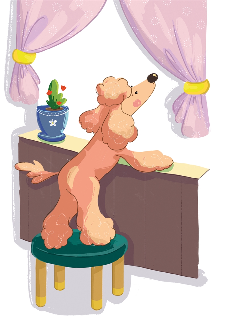 Жизнь пуделя текла размеренно. Каждое утро он вставал за хозяйкой, бегал возле её цветов, залезал на подоконник и даже на её бумаги на столе и лаял во двор. Иногда ей доставалось за Пегги, когда тот разбрасывал её вещи, драл забытый ею мешок или тапок или опрокидывал бутылки с водой для цветов, и вода проливалась. Щенок не всегда понимал, где и как ему ходить по своим делам, и допускал оплошности.