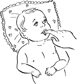 Одни из самых первых очевидных и заметных рефлексов – это рефлексы, которые вызываются при раздражении рецепторов полости рта: сосательный и глотательный. Именно они позволяют малышу искать пищу и насыщаться ею. Вы можете обратить свое внимание на то, как младенец автоматически делает сосательные движения, когда вы протираете ему губы и рот изнутри или щеки и подбородок. Если вложить в рот ребенка соску-пустышку, мамин сосок или собственный пальчик, он сразу начинает сосать.