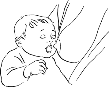 Если вы положите малыша вниз лицом, он чуть приподнимет голову ровно настолько, чтобы оторвать ее от поверхности, и повернет ее в сторону, чтобы обеспечить доступ воздуха для носа.
