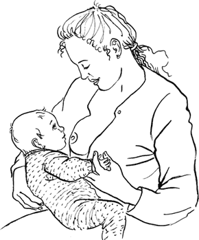 Во время кормления новорожденный пытается рассмотреть лицо мамы. Сначала малыш фиксирует взгляд обычно в области волос и лба мамы, а к трем неделям он уже смотрит прямо в глаза.