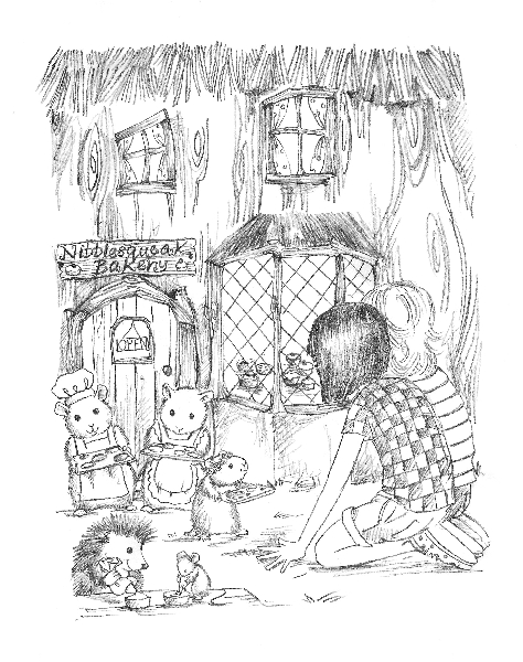 Золотисто-коричневые хомячки раздавали неукрашенные пирожные всем гостям, собравшимся за столами возле пекарни. Завидев девочек, они помахали им.