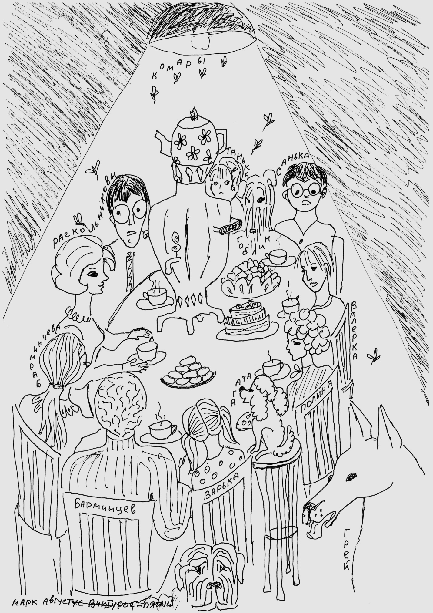 Но уже более трёх часов назад, Наталья Павловна Сосновская заторопилась домой, чтобы помочь уложить внука спать, а с ней ушли её муж и их соседка, Лидия Львовна Куваева. После их ухода обстановка за столом разрядилась. Теперь здесь осталась правильная компания, то есть такая компания, где собак любят и вовсю балуют. Правильная компания состояла из самой Веры Кирилловны, её мужа Виктора Андреевича, их дочерей тринадцатилетней Полины и девятилетней Вари, ближайших соседей Барминцевых, Алексея Владимировича и Марины Александровны Раскольниковых с сыном Санькой и дочерью Танькой, и младшего представителя семейства Сосновских – Валерки.