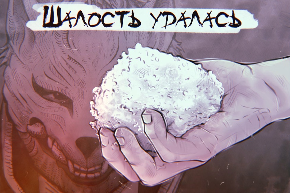 Лисий Демон бросил снежок в спину вору, который спешно грабил магазин.
