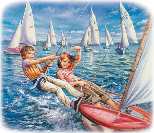 Автор: Ольга-Влада СкобелкинаХмурит ветер небеса, раздувает паруса. К берегам плывём. Регата. «Посмотрите вдаль, ребята, Ух, какие паруса — это просто чудеса!»