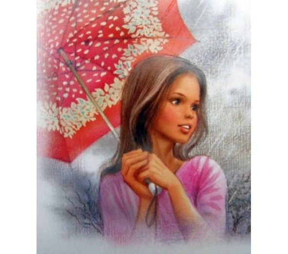 Автор: Ольга-Влада СкобелкинаРожицу скорчили тучи с утра.Кто их посмел потревожить вчера?Может быть, ветер трепал их слегка —Вот и грозятся дождём свысока.Кап! Превратились все улицы в сад —Зонтики, словно цветочки, пестрят.Длинные ножки-тростинки в руках.Капли дождя, что росинки, в цветах.Розовый зонтик расцвёл, как пион,Маковой крышей прикрыт павильон!Рядом промчался большой георгин,Гордо шагает лиловый люпин.Бабушка зонтик несёт с васильком,С астрою мама, сестра с ковыльком.Жёлтый, с подсолнухом, дама несёт.Клумбу из зонтиков дождик польёт.…Тучка-летучка, как с хоботом слон,Улицы моет, зонты и газон.