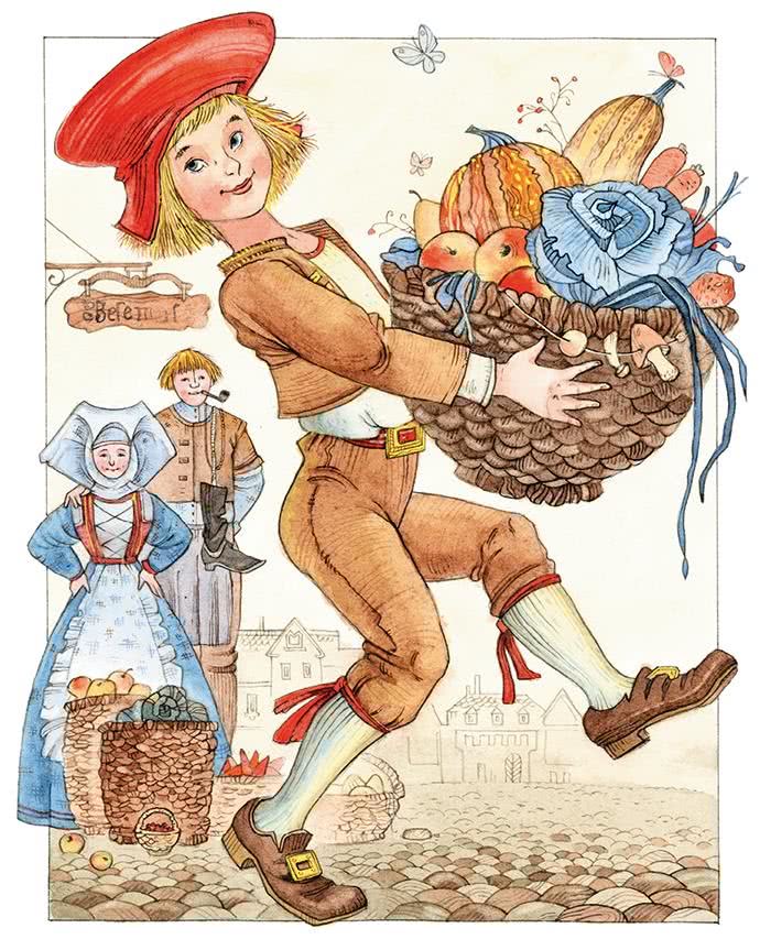 – Хорошо, пусть будет по-твоему! – воскликнула старуха яростно. – Я куплю эти шесть кочанов. Только вот что: я ведь должна опираться на палку и сама нести их не могу, – так вели своему сынку, чтобы он снёс мне товар на дом. Я ему за это заплачу.