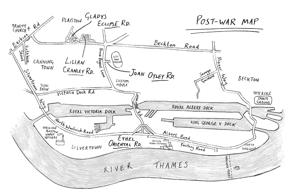 Today, after the closure of the docks and almost all of the local factories, much of Silvertown has the feeling of a ghost town. It is overshadowed by the planes taking off and landing at City Airport – whose runway cuts between the Royal Albert and King George V docks – and the looming concrete viaducts of the Docklands Light Railway. Many of the old Victorian terraces have been replaced by blocks of council flats, and the pubs, shops and cafés that once lined the North Woolwich Road opposite the Plaistow Wharf Refinery are all gone. The close-knit neighbourhoods, and the way of life that once thrived there, have vanished and can never be recovered.