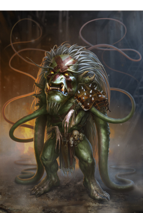 Морок был поистине огромен. Под три метра ростом. Его громадная голова была покрыта длинными толстыми иглами. И хотя у него были две крохотные ручки, он предпочитал манипулировать четырьмя мощными щупальцами, одно из которых обвивало сейчас шею Грогга. Другое щупальце хлестнуло Грея и сбило его с ног.