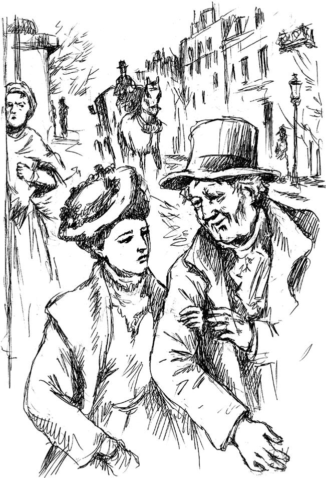 Qrafinya alicənablıq hissiylə madam Vokeyə geyim və bəzək barədə bəzi göstərişlər belə verdi. «Siz döyüşə hazır olmalısınız», – o dedi. Daha sonra onlar birlikdə moda mağazasına gedərək lələkli şlyapa və çutqu10 aldılar. Qrafinya öz rəfiqəsini həvəsləndirərək başqa bir mağazaya apardı. Burda onlar şərf və paltar seçib götürdülər. Baxmayaraq ki əliaçıq deyildi, bununla belə, madam Voke qrafinyaya minnətdarlıq əlaməti olaraq iyirmi franklıq bir şlyapa alıb bağışladı.