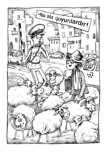 Qoyun sürüsü küçəyə çıxıb yolu kəsdi, bütün nəqliyyat dayandı. Avtobusların və trolleybusların sirenaları qəzəblə cingildəyir, tramvay zəngləri dayanmadan cingildəyir, milislərin aramsız fiti eşidilirdi. Kabinlərindən çölə boylanan avtomobil sürücüləri qəfil peyda olan qoyun sürüsünün və onun sahibinin ünvanına nalayiq sözlər deyirdilər. Ağ önlüklü küçə süpürgəçiləri isə heyrətlə bir-birilərinə baxır, nə baş verdiyini anlamağa çalışırdılar…