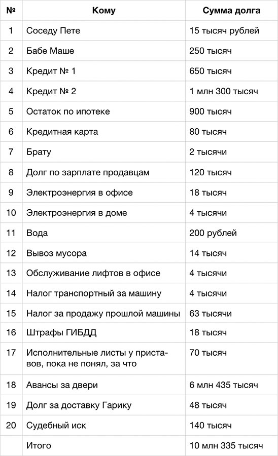 Точно так же и с долгами. Цифры очень хорошо отрезвляют.